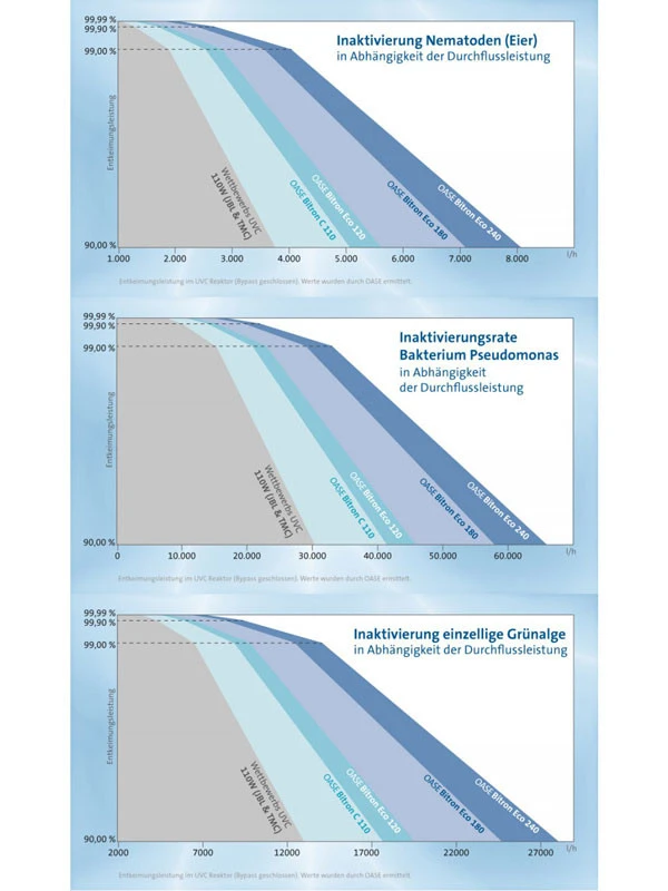 Damit setzt der Bitron Eco neue Maßstäbe: Denn gegenüber einfachen UVC-Geräten, die das ganze Jahr hindurch mit unverminderter Leistung bestrahlen und so Energie vergeuden, passt sich der Bitron Eco dem jahreszeitlichen Verlauf der Algenvermehrung optimal an. Dabei wird immer nur so viel Energie eingesetzt, wie tatsächlich benötigt wird. Auf diese Weise erzielen Sie ein maximales Ergebnis, sparen Energie und bares Geld und schonen zugleich die Umwelt!