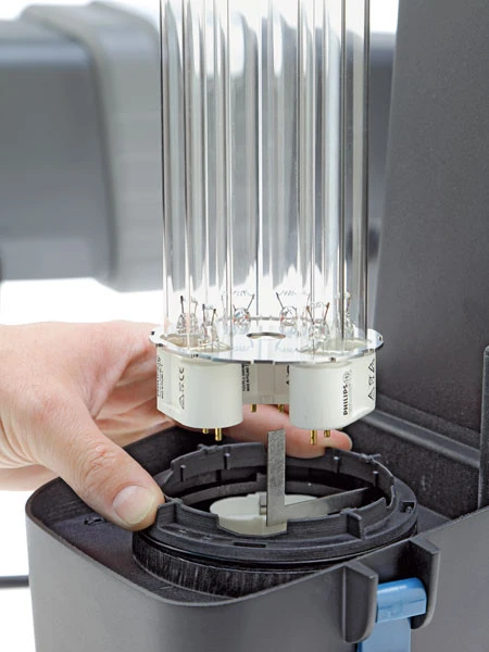 Die innovative UVC-Lampentechnik ermöglicht hohe Durchflussmengen bei optimaler Energieeffizienz mit hohem Energiesparpotential. Vollautomatisch werden dazu die Bestrahlungszeiten reguliert und dadurch bis zu 50% Energiekosten eingespart! Die clevere Reinigungsautomatik sorgt für permanente, intensive UV-Bestrahlung.
