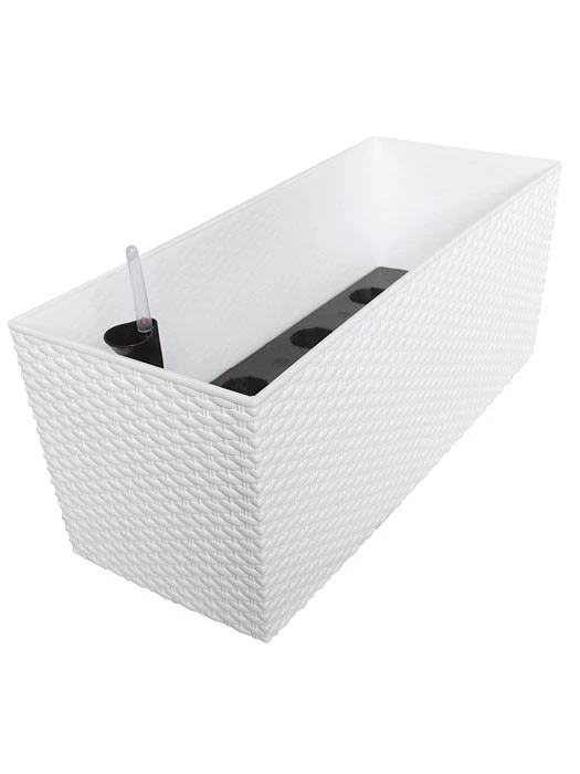 Zum optimalen Bewässern beinhalte der Blumenkasten einen Einfüllstutzen und einen Wasserstandsanzeiger, somit können Sie Ihre Pflanzen nie überwässern. Die Wasserversorgung geht über erdgefüllte Kegel. Der Rato Case Blumenkasten ist in zwei Farben und Größen erhältlich.