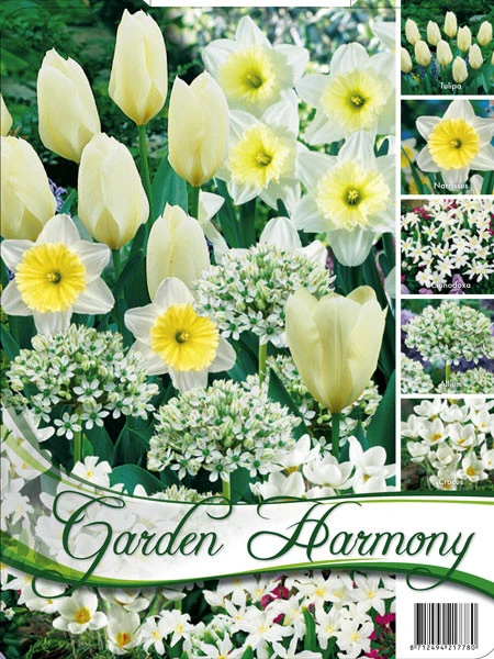 Die Farbkombination besteht aus 5 Sorten verschiedener, frühjharsblühender Blumenzwiebeln, die aufeinander abgestimmt sind.