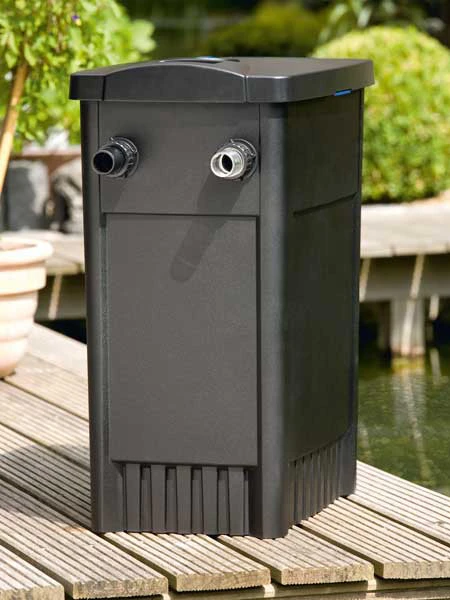 Im OASE Filtersystem FiltoMatic CWS ist ein UVC-Vorklärgerät ebenso integriert wie eine neuartige Schlammpumpe. Abhängig von der Temperatur des Teichwassers werden beide automatisch gesteuert. Das erhöht bedarfsgerecht die Filtereffizienz und hilft gleichzeitig, beim ganzjährigen Betreiben des Filtersystems Stromkosten zu sparen.