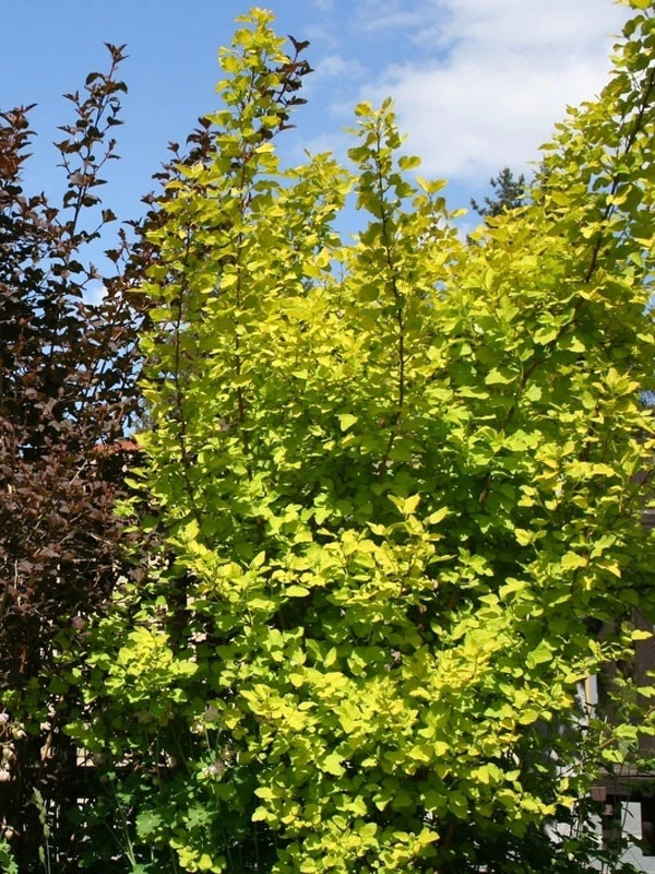 Der aus Nordamerika stammende Zierstrauch wächst auf allen Gartenböden und profiliert mit einem hellen und leuchtenden Laub. Besonders vor dunklen Hintergründen kommt diese strahlend gelbe Färbung hervorragend zur Geltung.