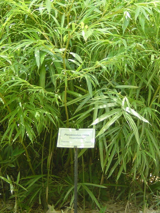 Elegantissima ist ein buntblättriger Zwergbambus mit besonders edler Erscheinung. Die dunkelgrünen Halme sind leicht überhängend und lassen sich vom Wind treiben, was der dichtbuschigen Pflanze einen fast kugelartigen Wuchs beschert. An den filigranen Halmen bilden sich sehr schmale Blätter mit einem auffallend weiß-grün-gestreiften und leicht gefleckten Muster. An halbschattigen bis vollsonnigen und geschützten Standorten entwickeln sich die Einzelpflanzen zu wahren Prachtexemplaren. Ein jährlicher Rückschnitt im Frühjahr fördert einen dichten Wuchs und eine Verjüngung der Pflanzen.