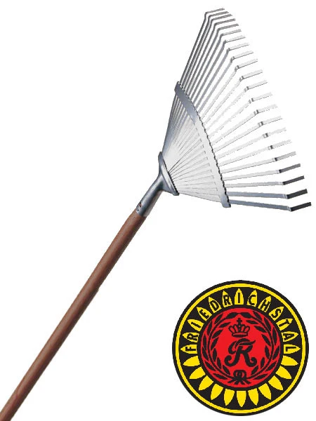Laubbesen aus Federstahl, unverstellbar, zum Zusammentragen von Laub und Gras. Hochwertiger Eschenholzstiel (Länge: 165 cm).