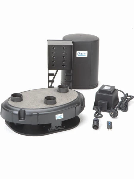 Es verfügt über 3 individuell angesteuerte Düsen, deren Fontänenhöhe und Geschwindigkeit durch fest eingestellte Programme per mitgelieferter Fernbedienung (max. 80 m Reichweite) wählbar sind.