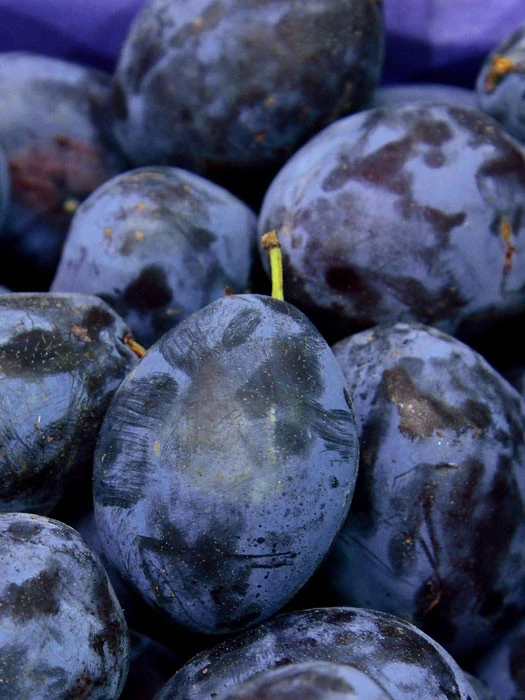 | Frucht: | Mittelgross bis gross, saftig, süss-säuerlich und fest. Oval, dunkelblau. Gut steinlöslich |